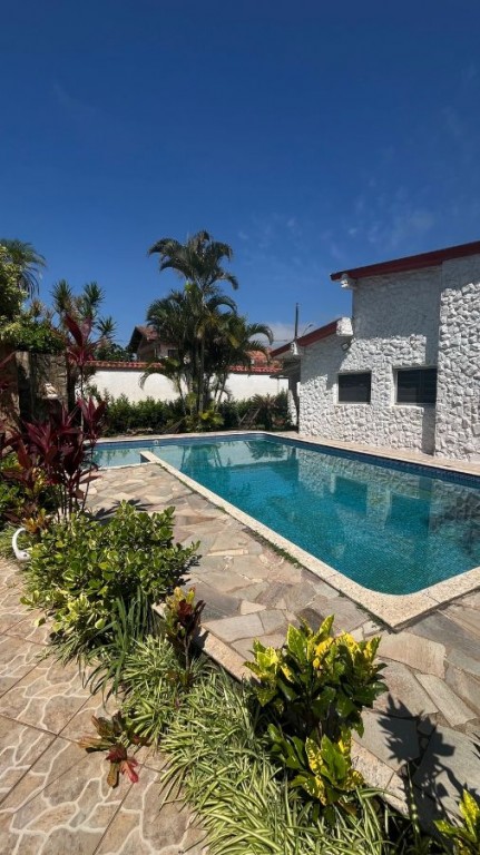 Casa com 5 quartos sendo 4 na casa com 3 suítes e mais 1 na edícula com banheiro, sala e cozinha, com piscina e churrasqueira e perto da praia em Praia Grande.