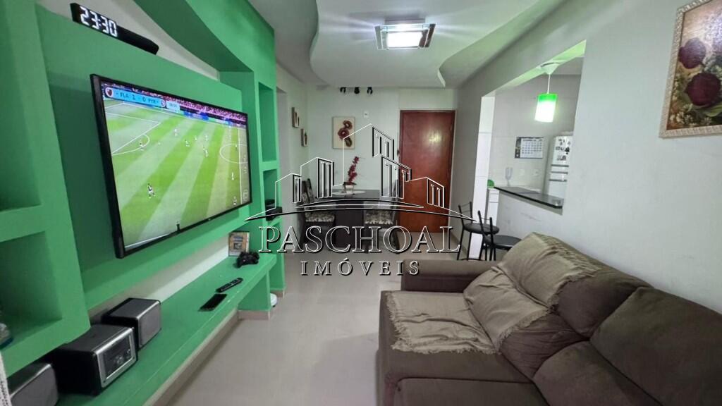 Apartamento 2 quartos, sendo 1 suíte, sala 2 ambientes com sacada gourmet, wc social, cozinha, área de serviço, 1 vaga de garagem.