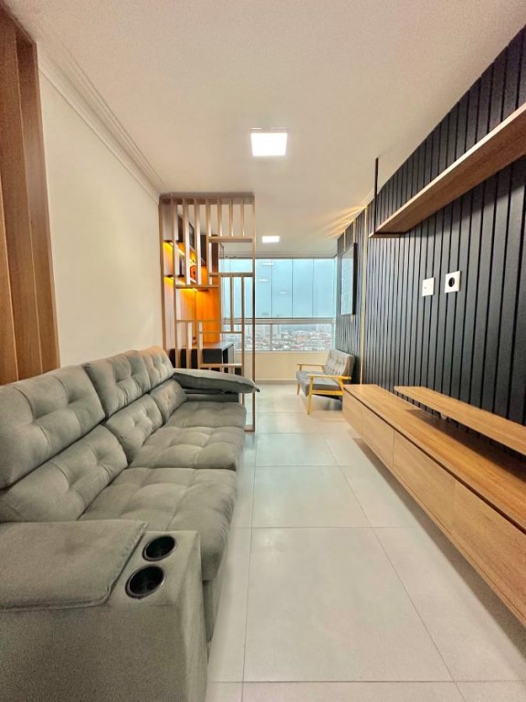 Apartamento alto padrão, semimobiliado, andar alto, tem 90m² de área útil distribuídos em 02 dormitórios, sendo 02 suítes, sala ampla para dois ambientes, sacada gourmet envidraçada, cozinha americana com armários, área de serviço, espaço técnico, lavabo e 2 vagas de garagem.