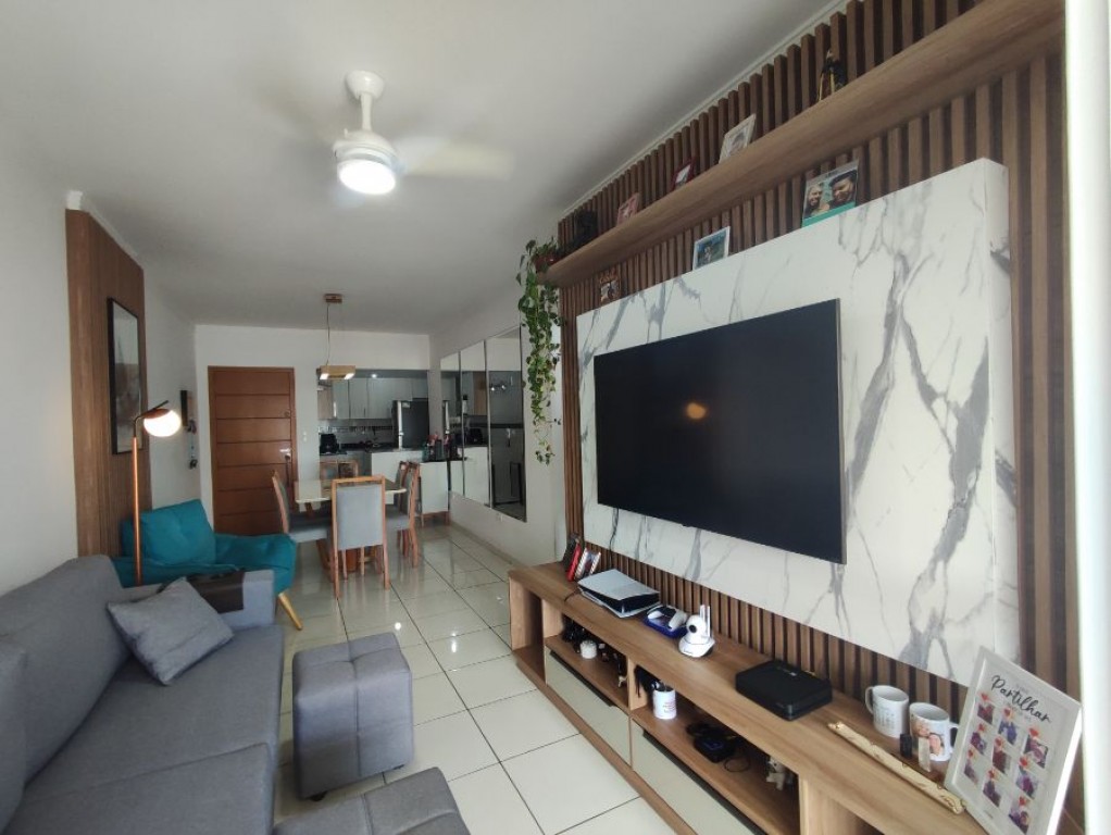 Apartamento de 2 dormitórios sendo 1 suíte, sala em L com dois ambientes já com ar condicionado , sacada com fechamento de vidro, cozinha, área de serviço com fechamento de vidro.