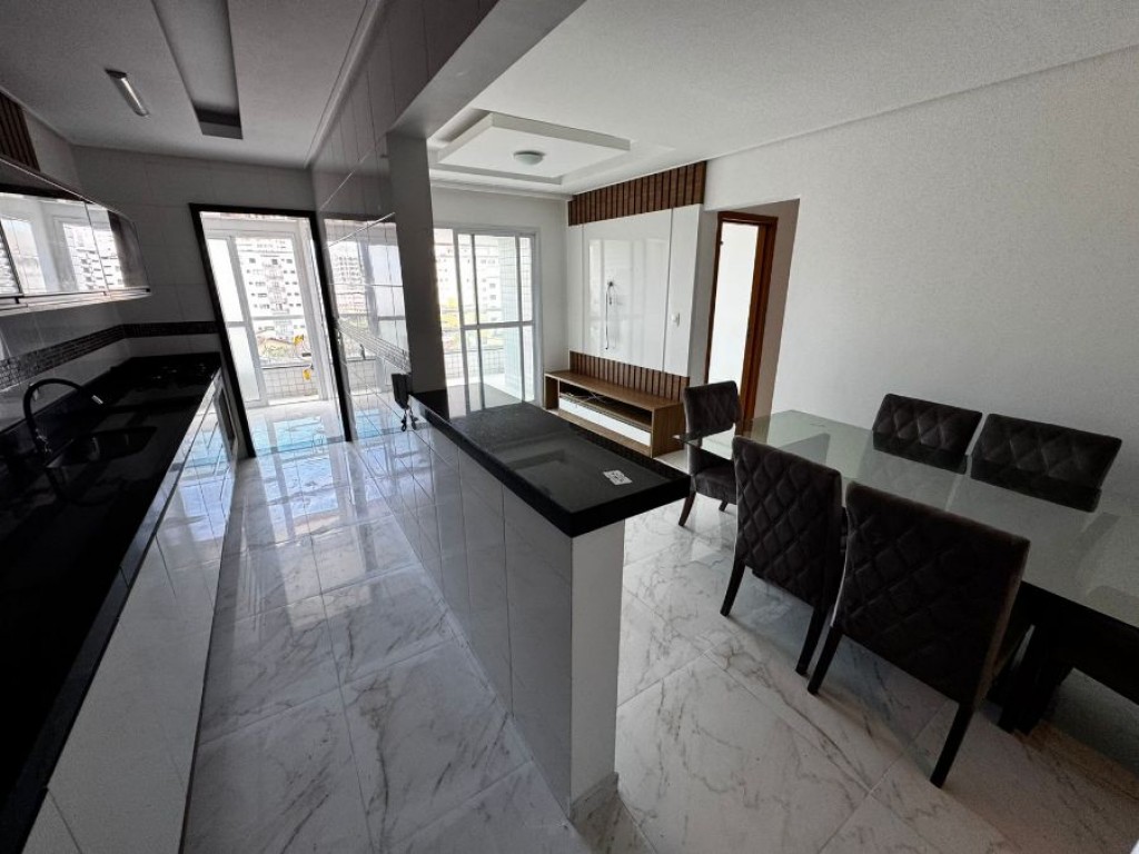 Apartamento 02 dormitórios sendo 01 suíte, cozinha Planejada ampla arejada com ótima claridade, espaço técnico para maquina de ar condicionado, apartamento com distribuição de ar condicionado nos quartos e na sala entregue pela construtora, sala dois ambientes, quartos amplos, Sacada gourmet enorme (02) duas vagas de garagem, localizado em ótimo bairro residencial na cidade de Praia Grande , próximo a comércios.