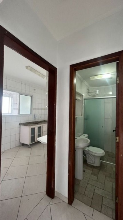 Banheiro social, cozinha + área de serviço e 1 vaga de garagem..