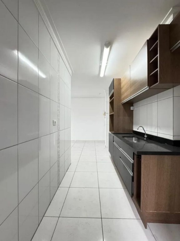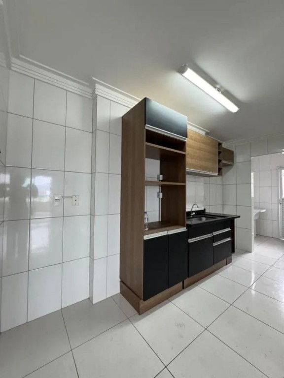 Possui sala dois ambientes , cozinha americana, area de serviço