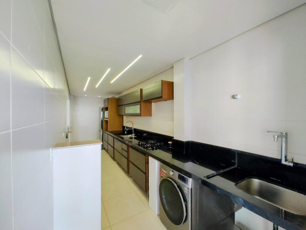 Apartamento alto padrão, semimobiliado, andar alto, tem 90m² de área útil distribuídos em 02 dormitórios, sendo 02 suítes, sala ampla para dois ambientes, sacada gourmet envidraçada, cozinha americana com armários, área de serviço, espaço técnico, lavabo e 2 vagas de garagem.