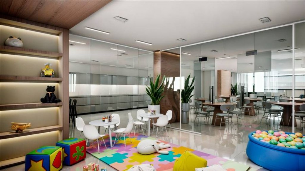 Lazer completo: Salão de Festas com brinquedoteca, Salão de Jogos Adulto, Salão de Jogos Juvenil, Brinquedoteca, Sala Fitness, Espaço Beleza, 4 Espaços Gourmet, Piscina adulto, Piscina infantil, Armários Hobby Box, Bicicletário.