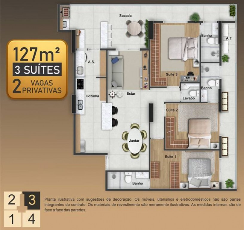 Área Útil127,84m²