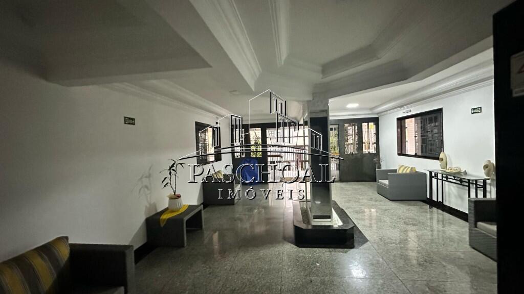 Prédio possui lazer com piscina, brinquedoteca, salão com churrasqueira.