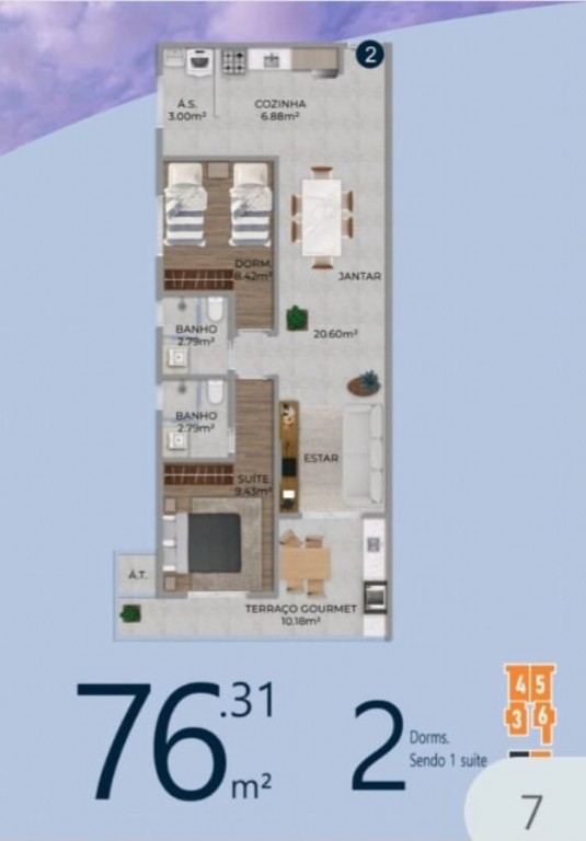 Área Útil76,00m²
