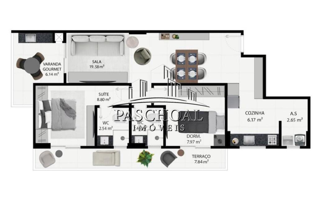 O imóvel possui entre 70 e 73m2 de área útil, com 2 quartos sendo 1 suíte, sala para dois ambientes, sacada, cozinha funcional, área de serviço, lavabo e 1 vaga de garagem. Conta ainda com piso em porcelanato, acabamento em gesso, vista livre e churrasqueira, oferecendo conforto e sofisticação.