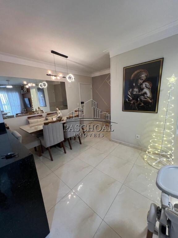 São 82m² de área útil, distribuídos em 02 dormitórios, sendo 01 suíte, sala ampla para dois ambientes, sacada gourmet com churrasqueira a carvão, cozinha americana, área de serviço com saída para sacada, banheiro social e 01 vaga de garagem.