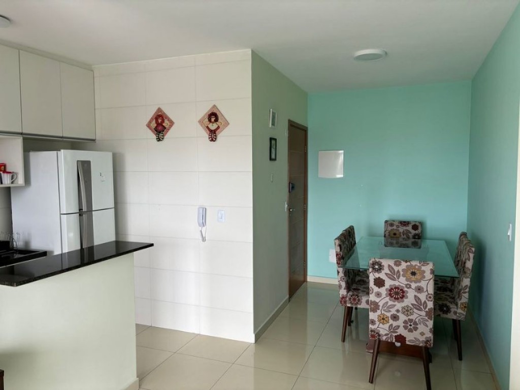 2 quartos, sendo 1 suíte, sala aconchegante, cozinha planejada, banheiro social e terraço com ponto grill.
