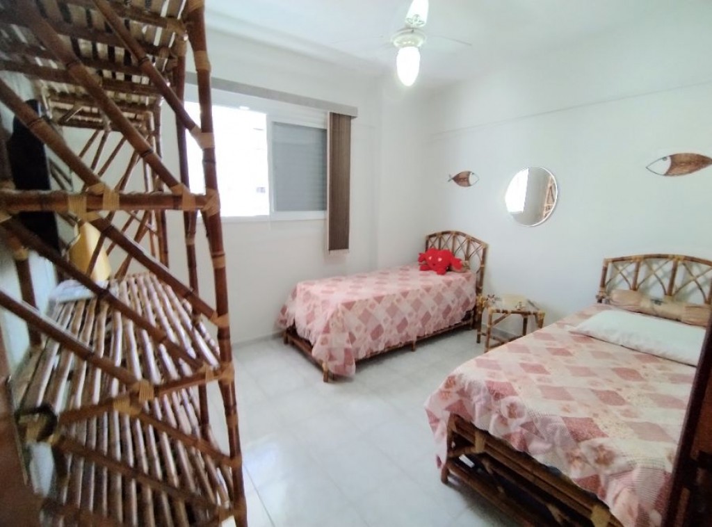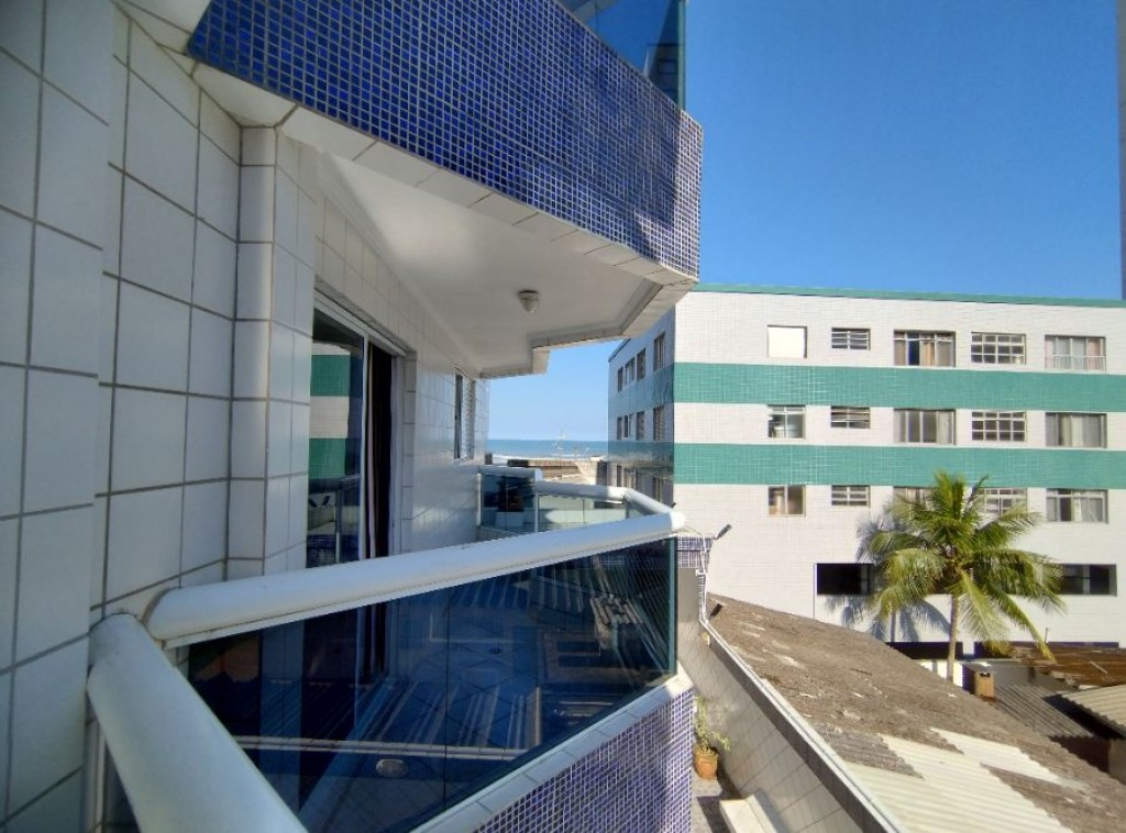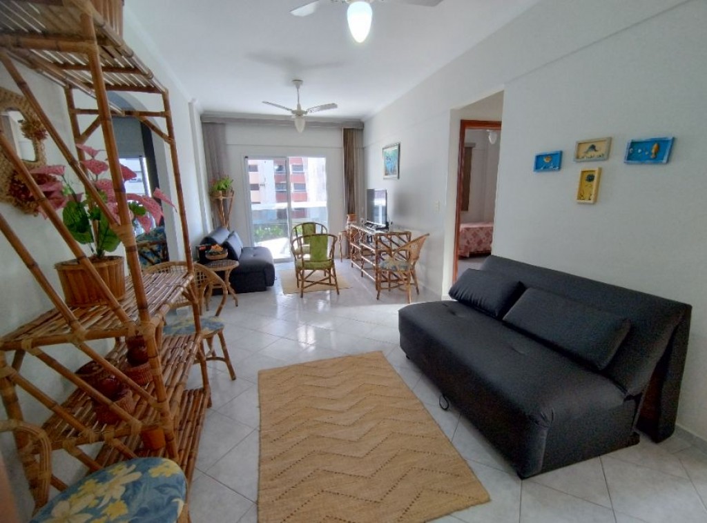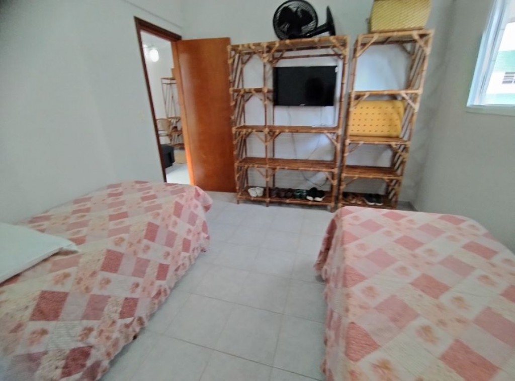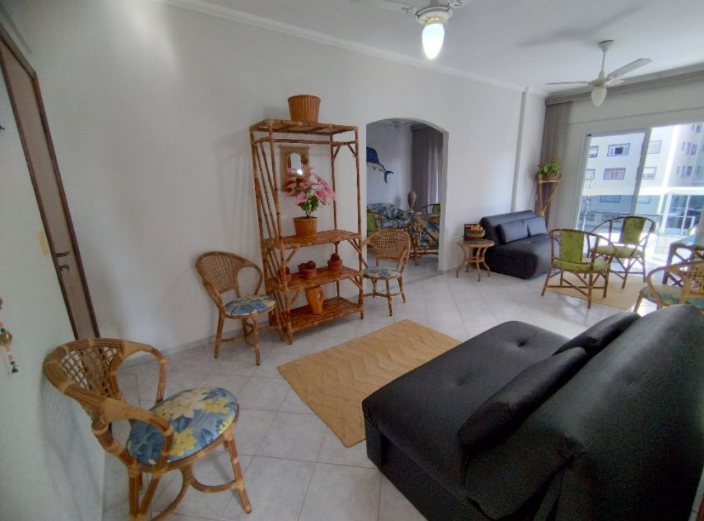 Apartamento quarto, 100m do mar, sala 2 ambientes com sacada vista mar, wc social, cozinha, área de serviço, 1 vaga de garagem.