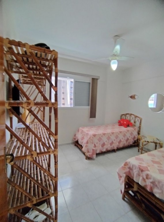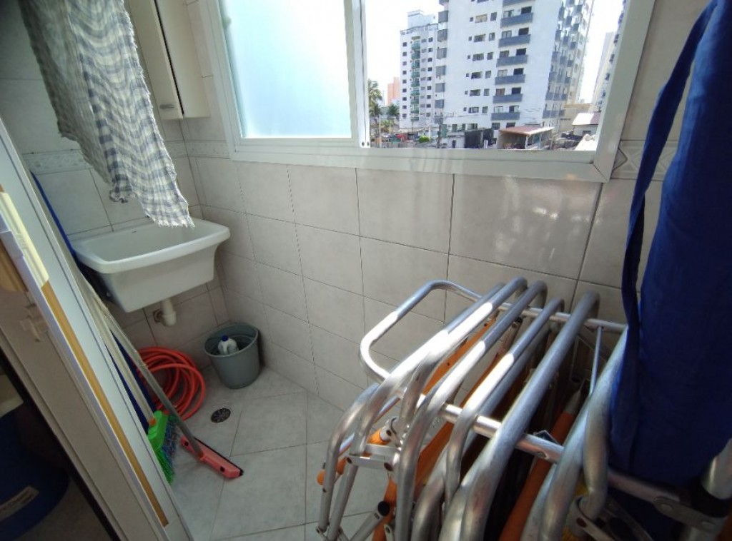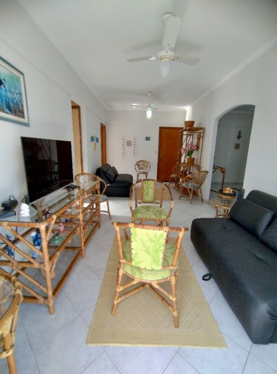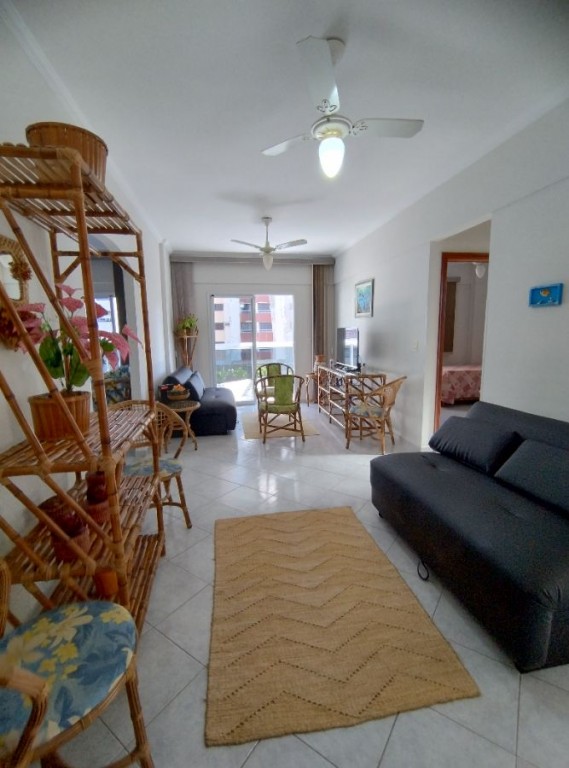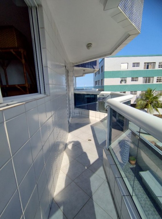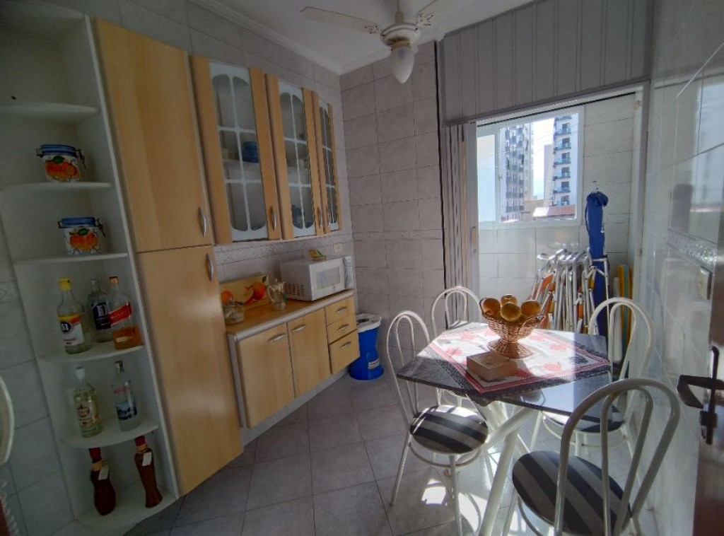 Apartamento quarto, 100m do mar, sala 2 ambientes com sacada vista mar, wc social, cozinha, área de serviço, 1 vaga de garagem.