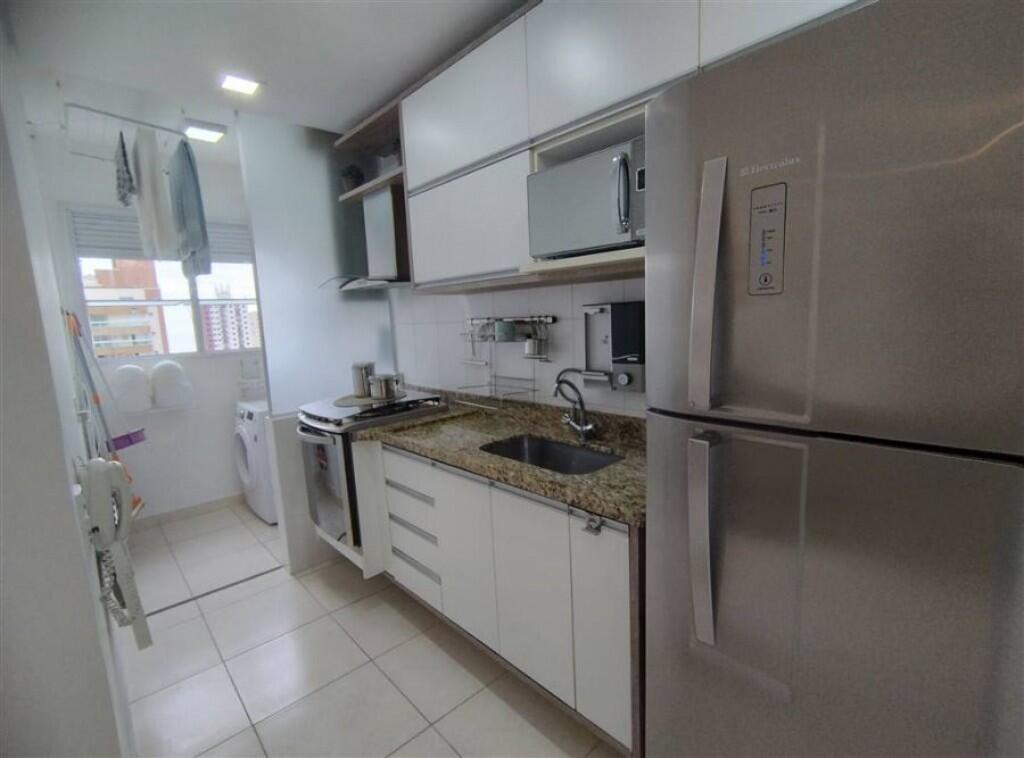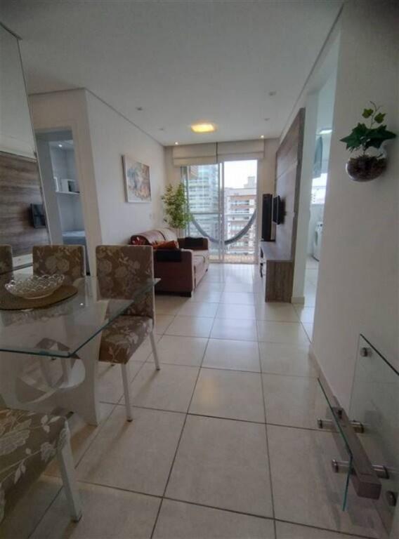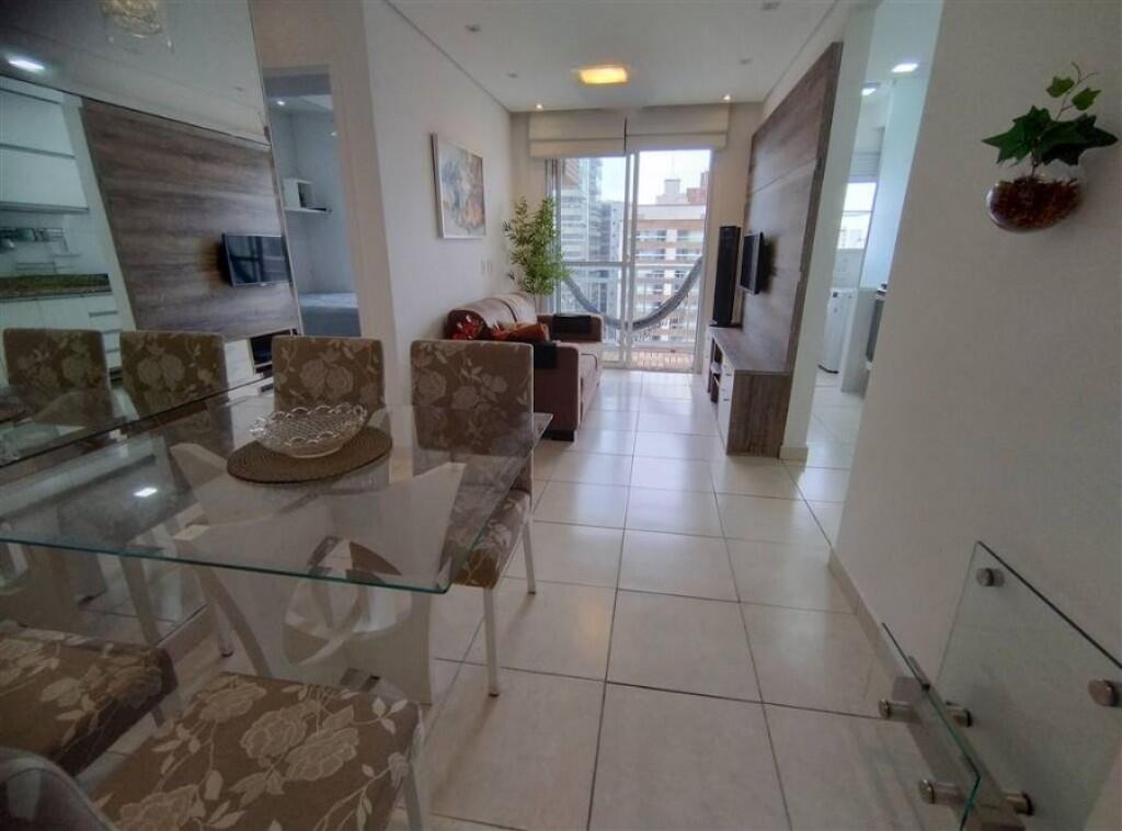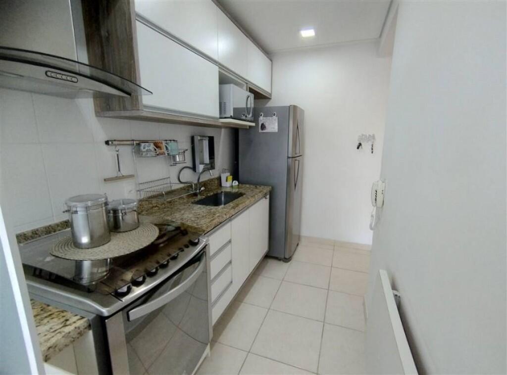 Apartamento semi mobiliado 1 quarto, sala 2 ambientes com sacada envidraçada, wc social, cozinha, área de serviço, 1 vaga de garagem demarcada.