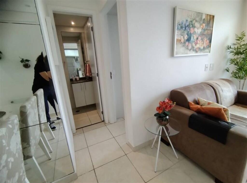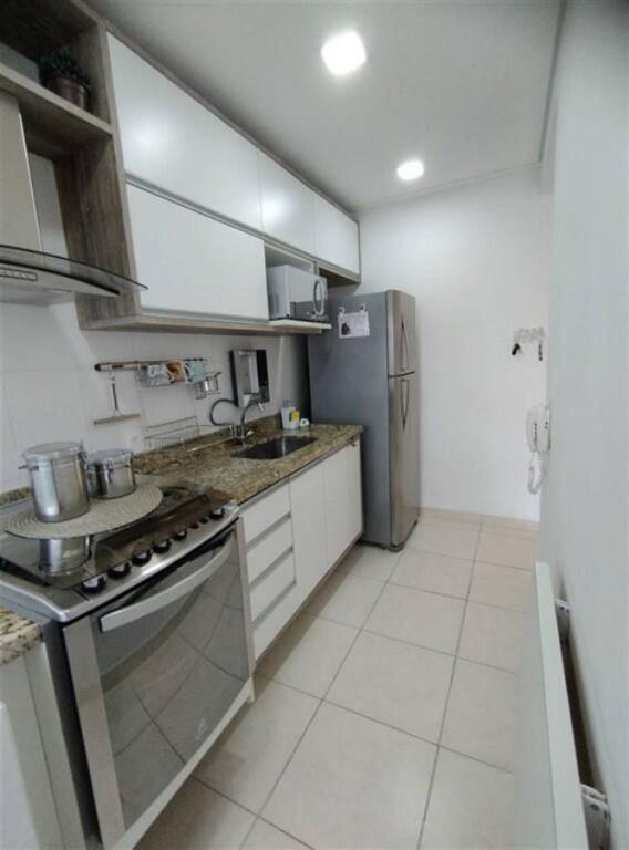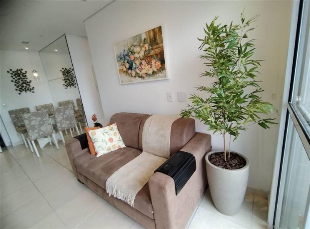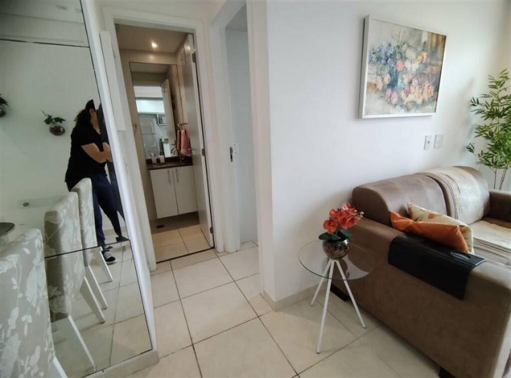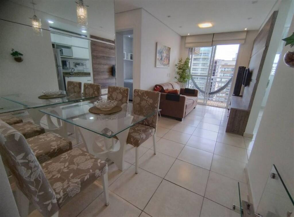 Apartamento semi mobiliado 1 quarto, sala 2 ambientes com sacada envidraçada, wc social, cozinha, área de serviço, 1 vaga de garagem demarcada.