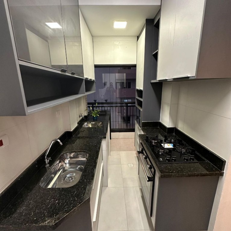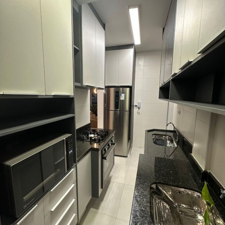 • Piso porcelanato em sala e cozinha.