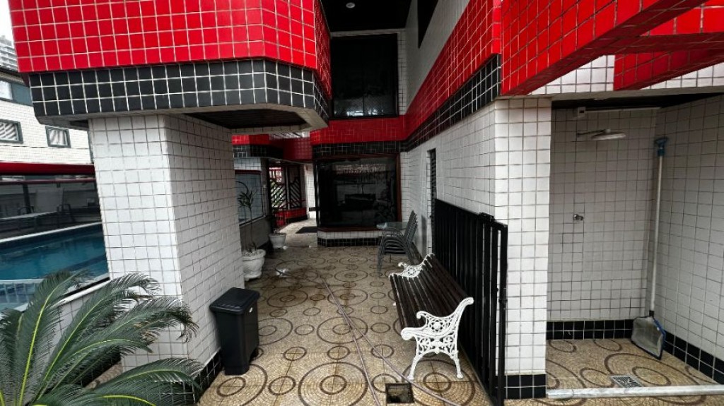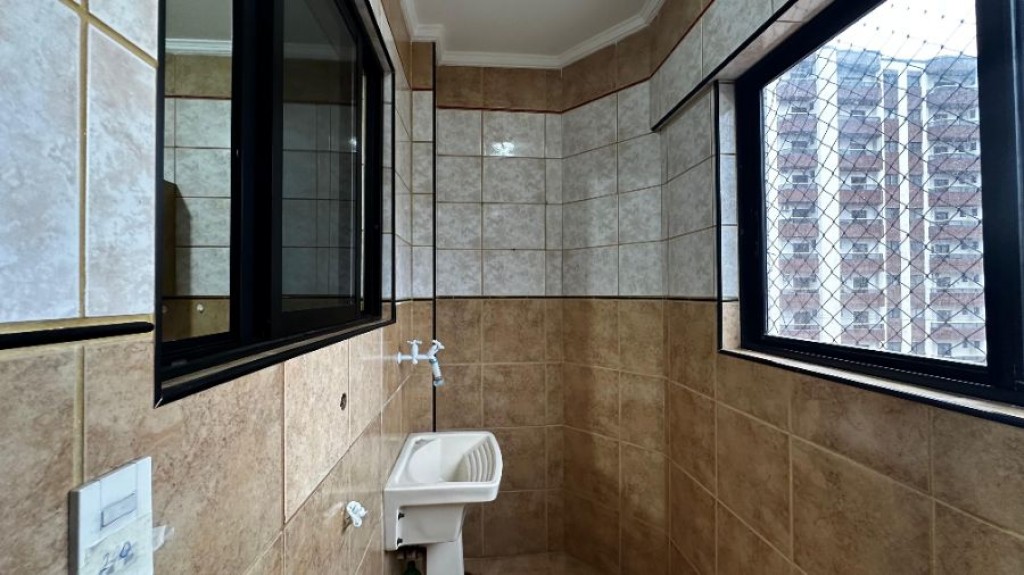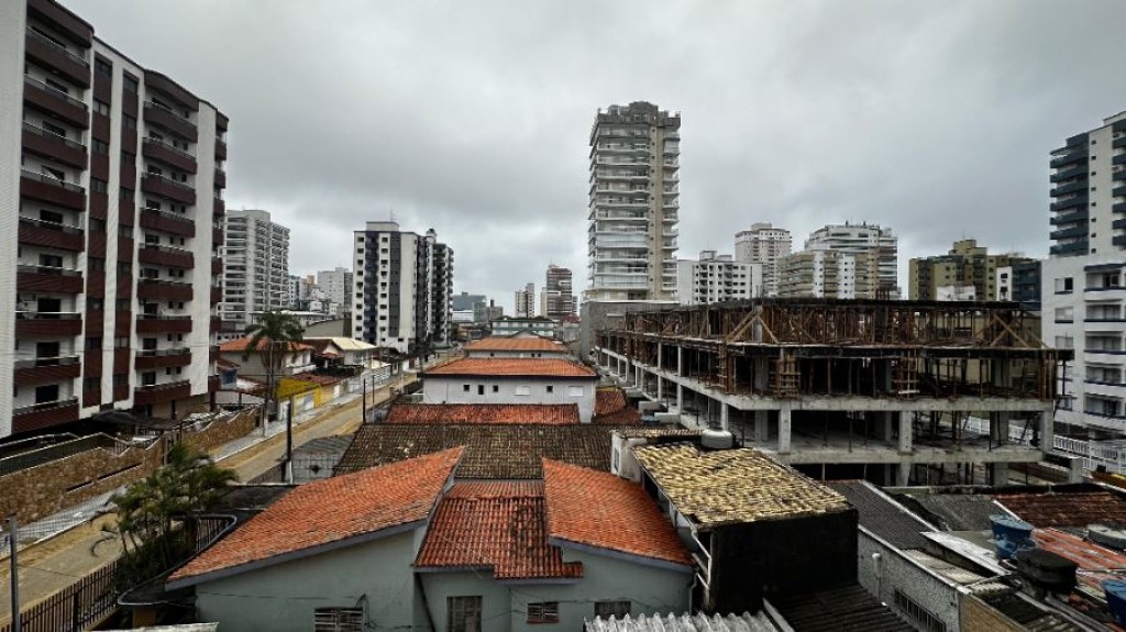 Apartamento 1 quarto, 1 banheiro social, sacada 80 metros da praia Guilhermina