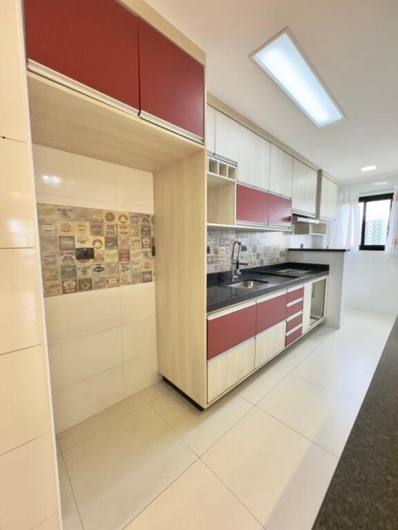 Apartamento semi mobiliado com 2 quartos, sendo 1 suíte, 2 banheiros, sala ampla para dois ambientes, varanda gourmet com churrasqueira e 1 vaga de garagem.