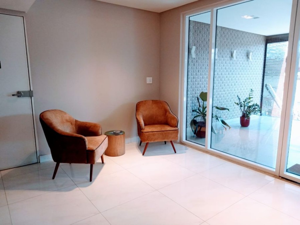 1º piso - holl de entrada ou espaço para home office, com 02 dormitórios sendo 02 suítes, com armários e sacada com vista livre.
