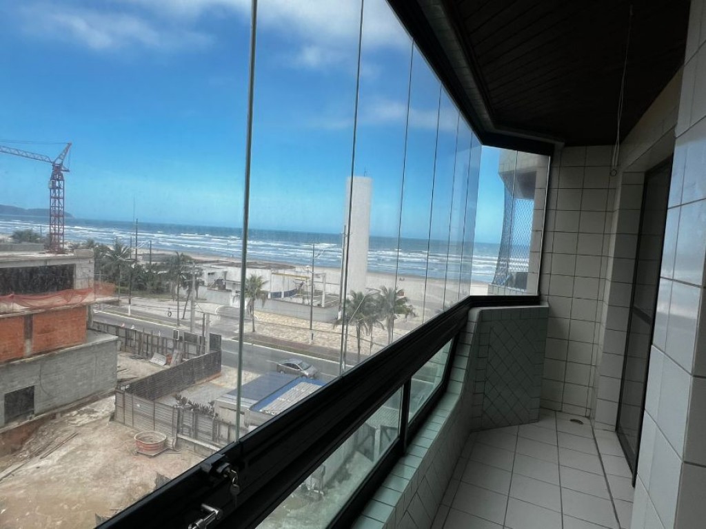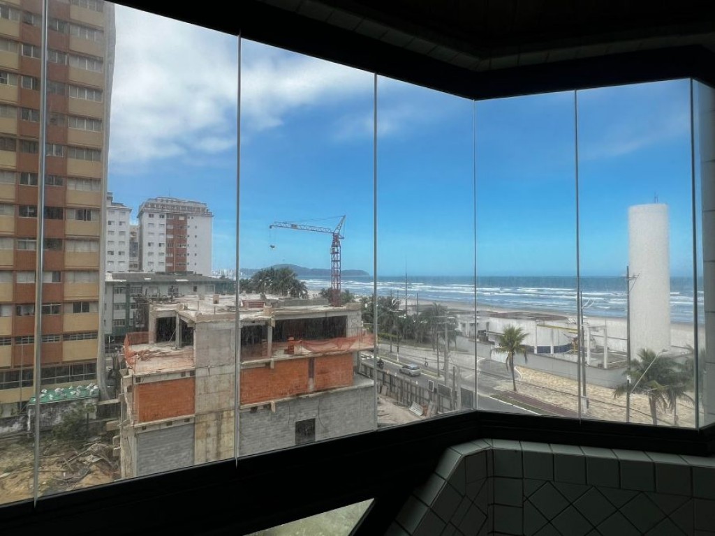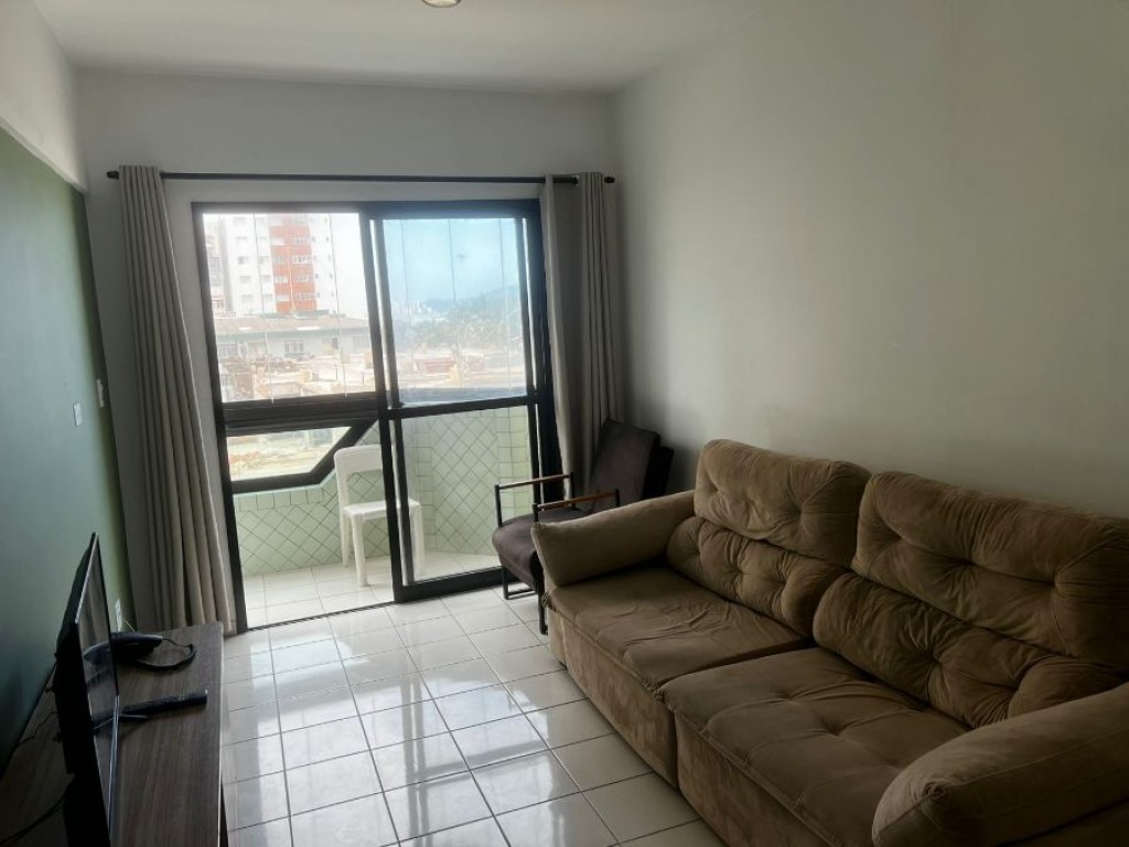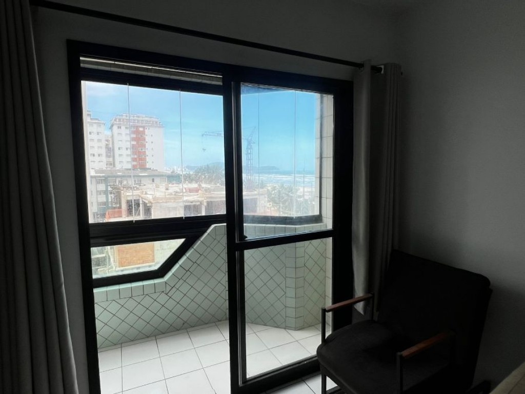 Apartamento de 1 dormitório sendo sala, cozinha, banheiro, área de serviço, sacada vista mar, 1 vaga de garagem.