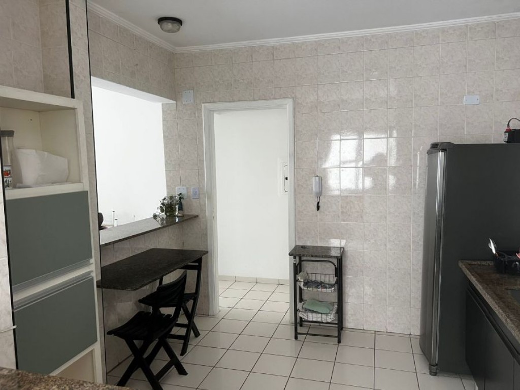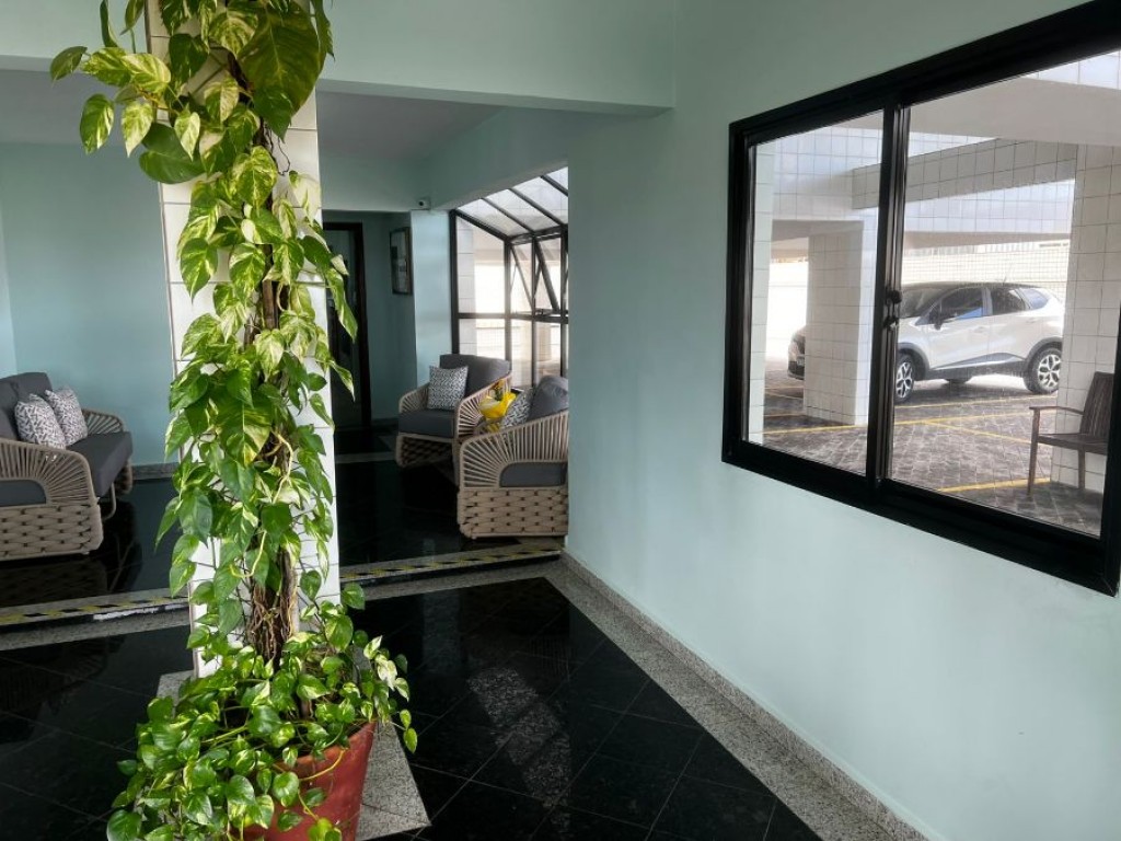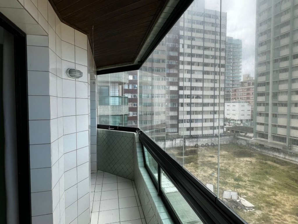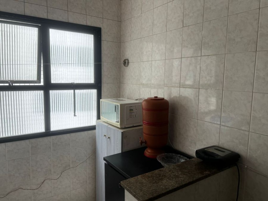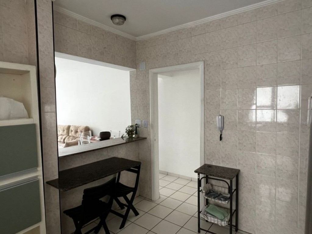 Apartamento de 1 dormitório sendo sala, cozinha, banheiro, área de serviço, sacada vista mar, 1 vaga de garagem.