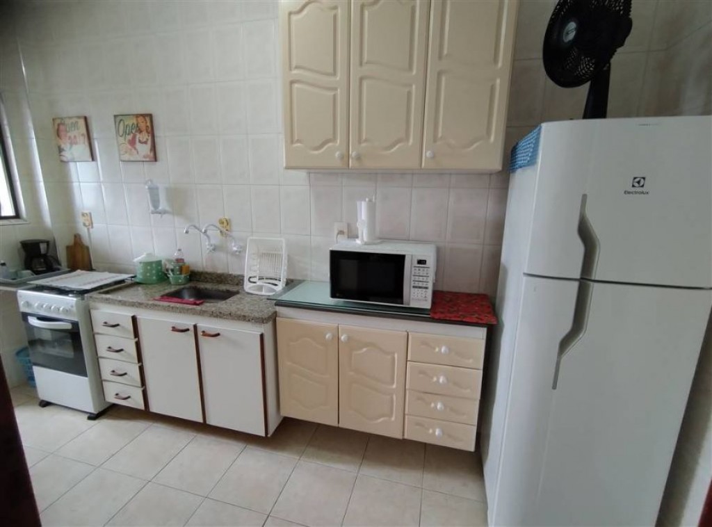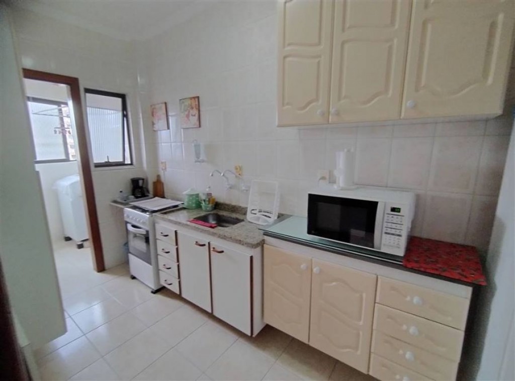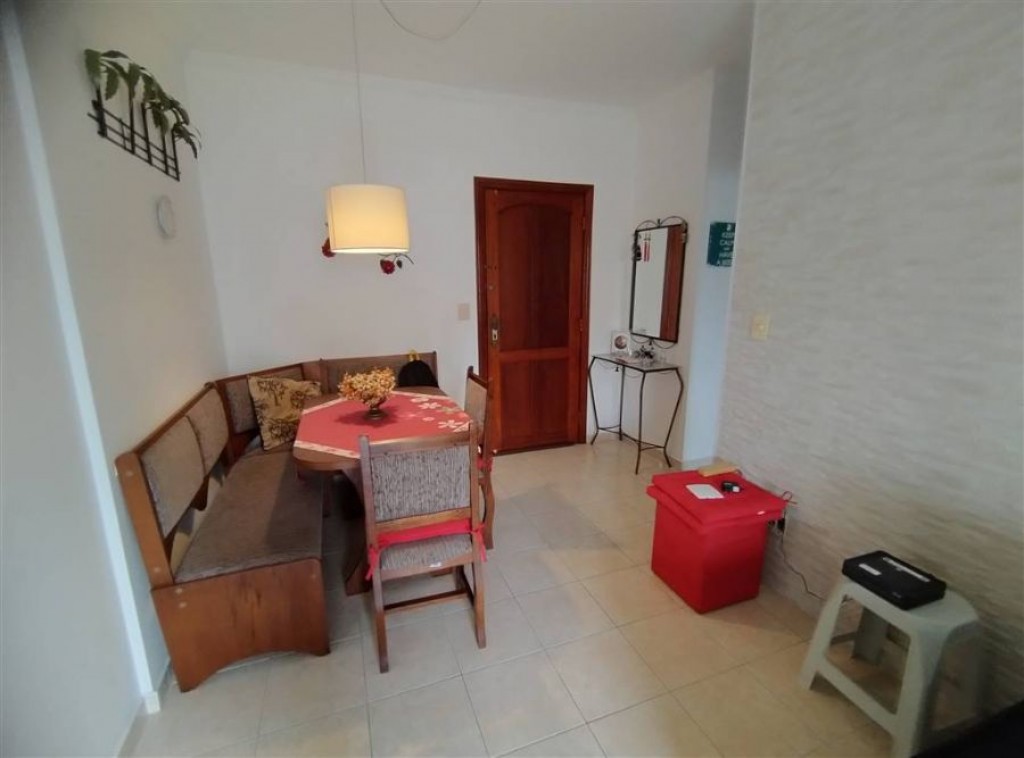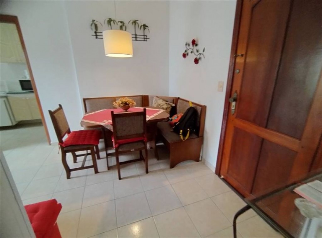 Apartamento mobiliado com 1 quarto, sala 2 ambientes, cozinha, wc social, área de serviço, 1 vaga de garagem.