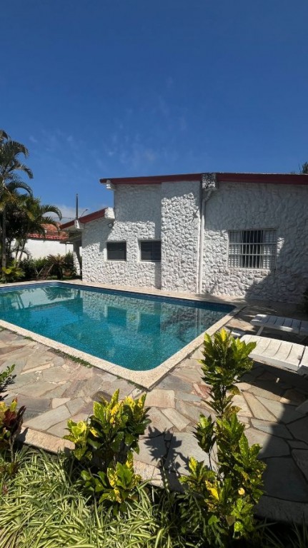 Casa 5 quartos sendo 3 na casa, com uma suíte e mais 2 na edícula com 1 banheiro, com piscina. churrasqueira e mesa de sinuca, perto da praia em Praia Grande.
