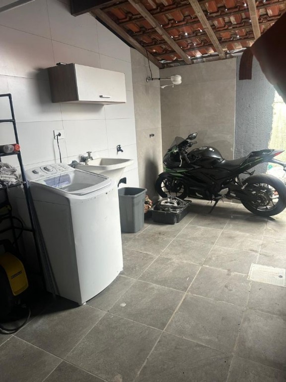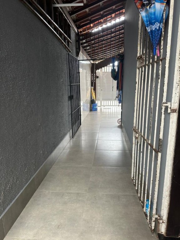 Área de serviço coberta, corredor espaçoso, vaga pra dois carros.