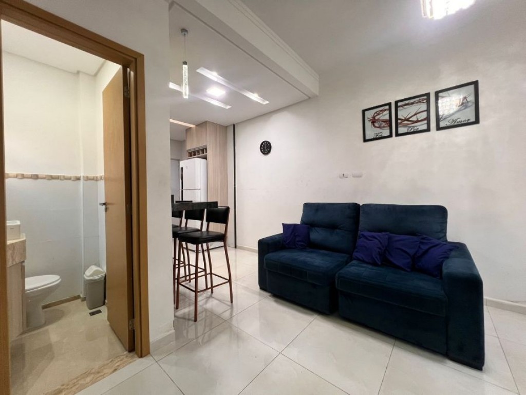 Possui dois dormitórios mobiliados, sala com móveis, cozinha com planejados, banheiro com armários e área de serviço também com armários, oferecendo praticidade e conforto em todos os ambientes.