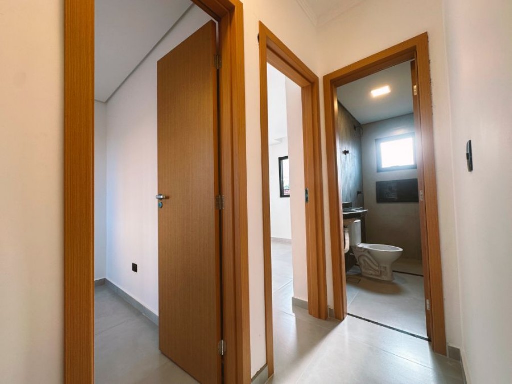 Sobrado em condomínio fechado com 2 dormitórios, sala, cozinha, banheiro e quintal.
