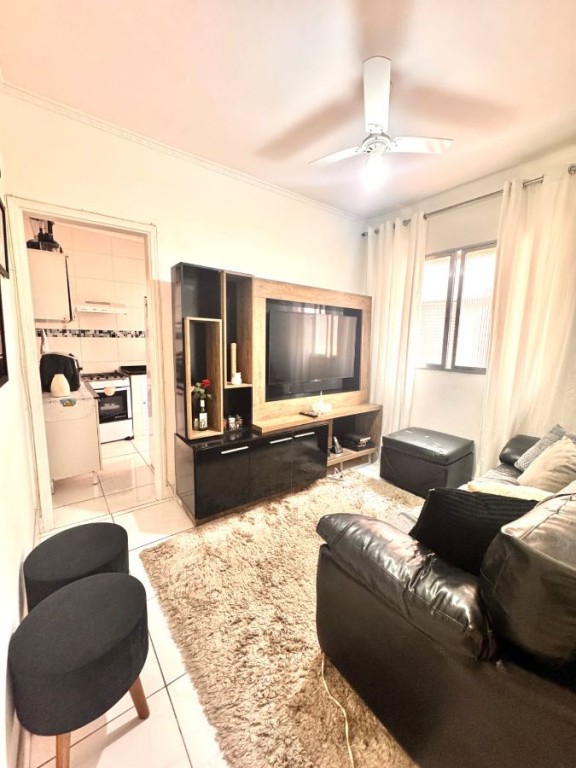 Com 55m² de área útil, este imóvel oferece 1 dormitório, sala ampla com sacada, 1 banheiro e 1 vaga de garagem, ideal para solteiros, casais ou quem deseja um espaço aconchegante perto da praia.